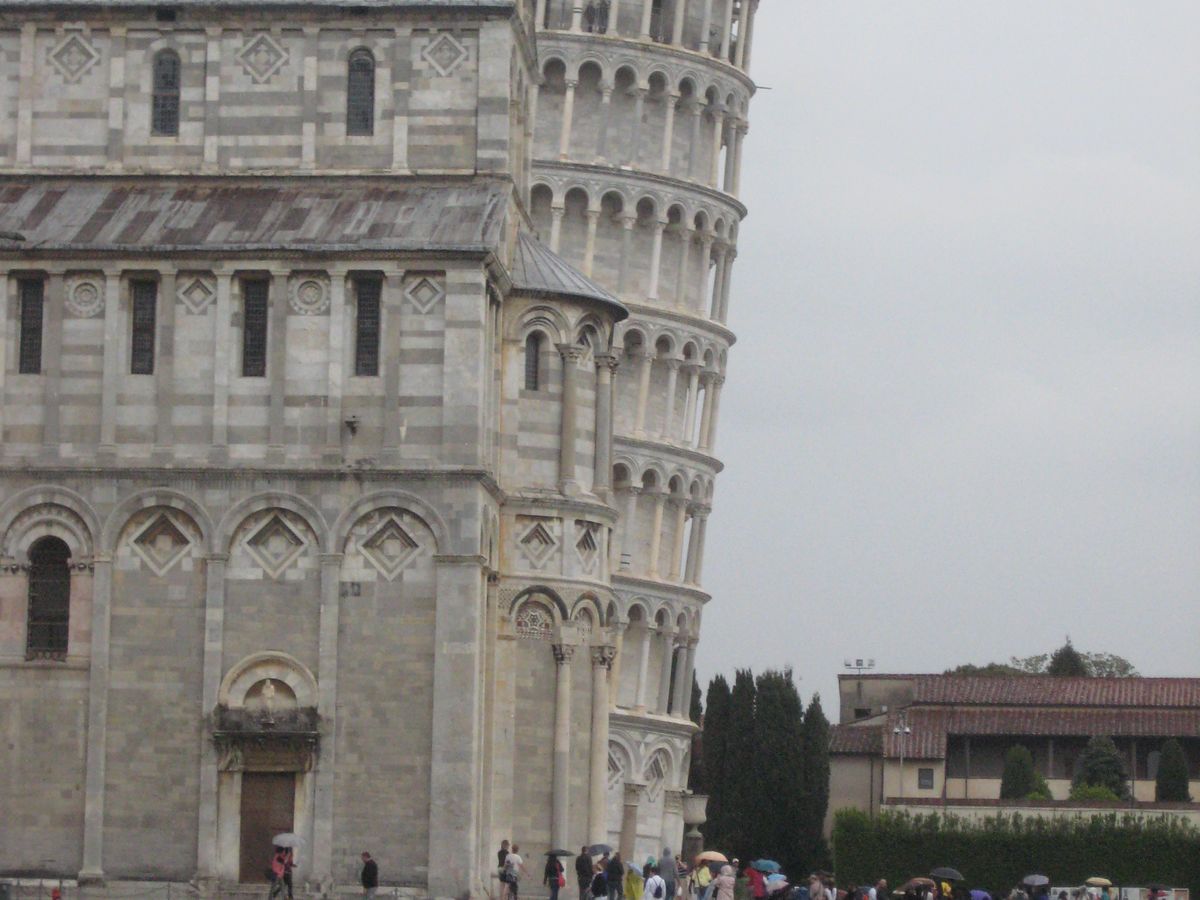 あいにく到着時には小雨でしたが、例の斜塔を支えるポーズの写真を何枚も撮ってくれました。