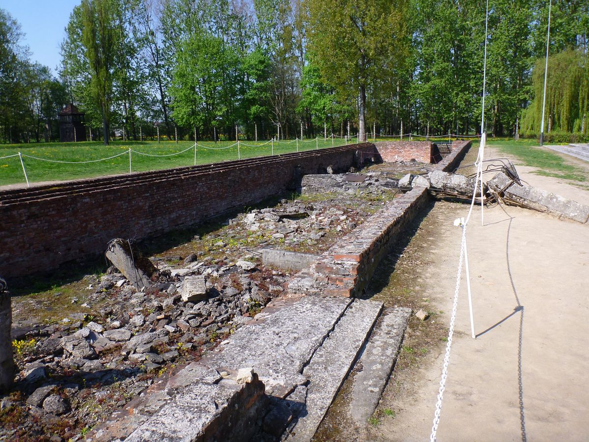 ぐるっと見てまわって鉄条網を越えて、ガス室を見て入り口に戻ります。
