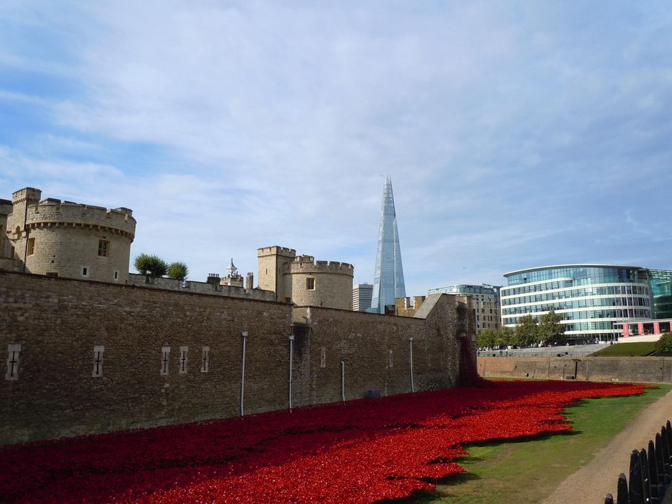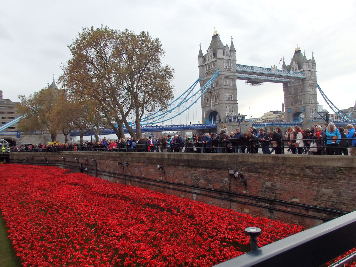 何かのイベントがあっていたようで、ロンドン塔の周囲に、赤い造花がたくさん飾られていました。