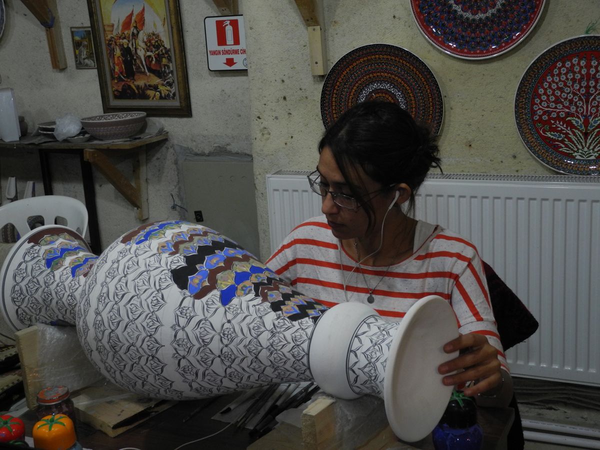 参加者は私たちを含めて6人。ガイドさんは日本語がお上手でとても感じの良い方でした!カッパドキアの見どころを効率よく回れて満足です♪後で気がついたのですが、プランに書かれていたトルコ洞窟民家訪問はなく、その代わりにアバノスの陶器工房見学がありました。陶器はどれも素敵で私は気に入った陶器を購入しましたが(他の方も皆さん購入されていました)、買う気がなければはっきりと断ったほうが良いと思います。ランチはブッフェスタイルでツアー客用といった感じでしたが、おいしく頂きました(ドリンクは別会計)。トルコカーペット店は希望があれば行きますと言われ、希望者がいなかったため立ち寄らずに少し早めにツアー終了となり私たちにとっては好都合でした。