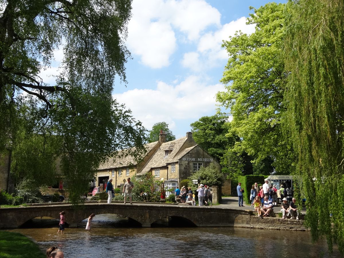 次は3つ目の村、ボートンオンザウォーターです。リトルベニスと呼ばれるこの町、ガイドブックから閑静できれいな小川の流れる町を想像していましたが、この日は日曜日!大勢の人が川沿いの芝生に寝転び、橋の上にも人、人で賑わっていました。ツアーのメンバーは買い物に行く人も多いようでしたが、私たちは川沿いで腰かけ、小川に足を浸してのんびりしました。小川の水は意外と流れが速く、きれいで冷たかったです!