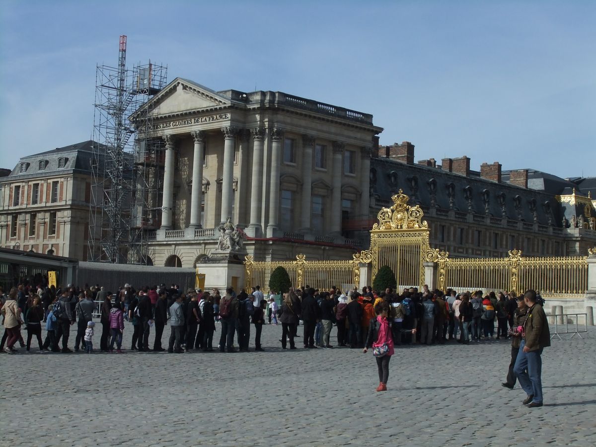 ベルサイユには9時前に着き入場まで10分程待ちましたが、門が開くと比較的すんなり入れました。入場の所で何やらフランス語で係員の方に言われ困りましたが、ガイドさんはもう入場していて更に困りました・・。9時前にベルサイユに行けばそんなに混雑には巻き込まれないのかもしれません・・。11時過ぎには写真のように長い列ができていました。