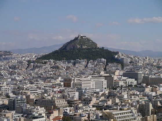 ホテルから小型バンでピックアップしてもらった後,大型バスに乗り換えました。バスはほぼ満席で,40~50名の参加者でした。バスで次々にアテネ市内の観光スポットをまわってくれます。「無名戦士の墓」では停車して,車窓からでしたが「衛兵交代」もよく見ることができました。第1回近代オリンピックが開催された「パナティコ・スタジアム」では下車して,写真も撮ることができました。その後,お待ちかねの「アクロポリス遺跡」の見学が始まります。あいにく,神殿は修復中で足場が多く掛けられていましたが,2016年には修復工事が終わる予定ということでした。その頃に,再度訪れたいものです。