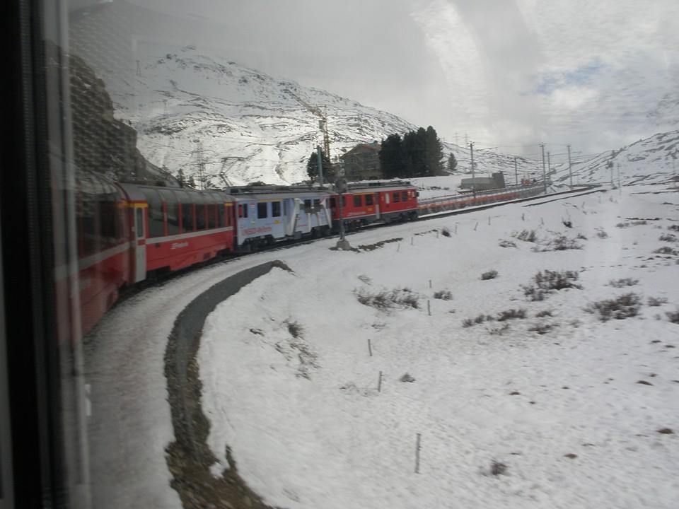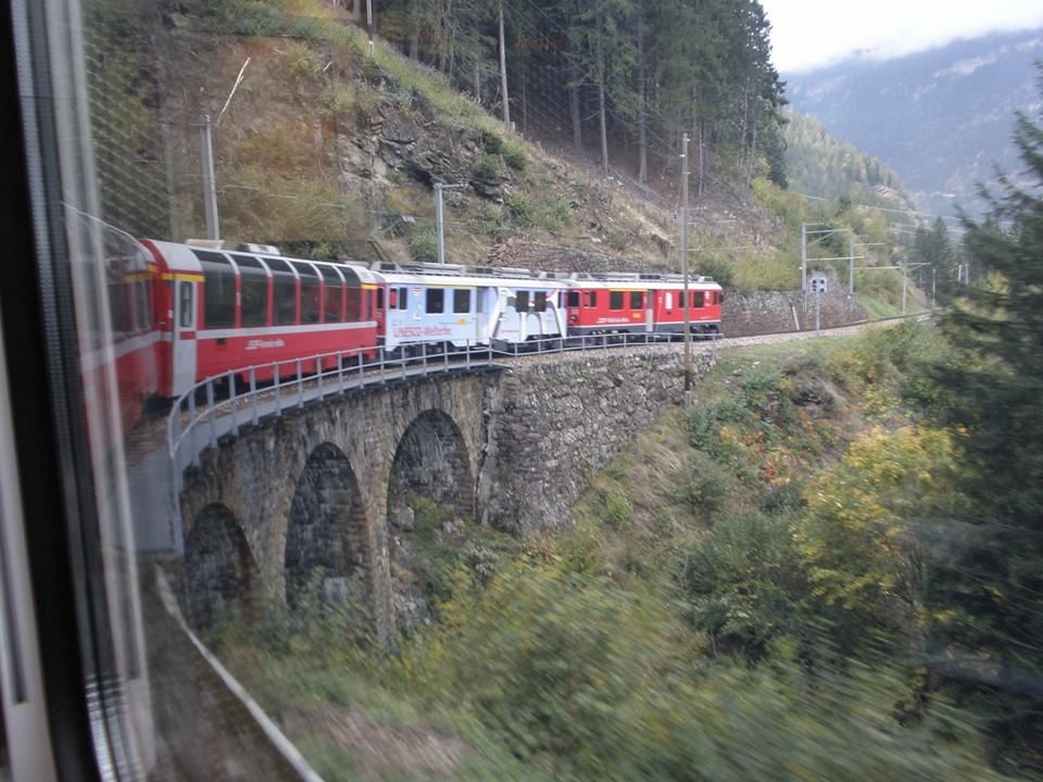 ベルニナ急行は、10月中旬だったためか、とても空いていたので、快適でした。列車からの眺めは、変化が多くいろいろな景色を楽しめます。2時間ちょっとの時間があっという間に感じました。
