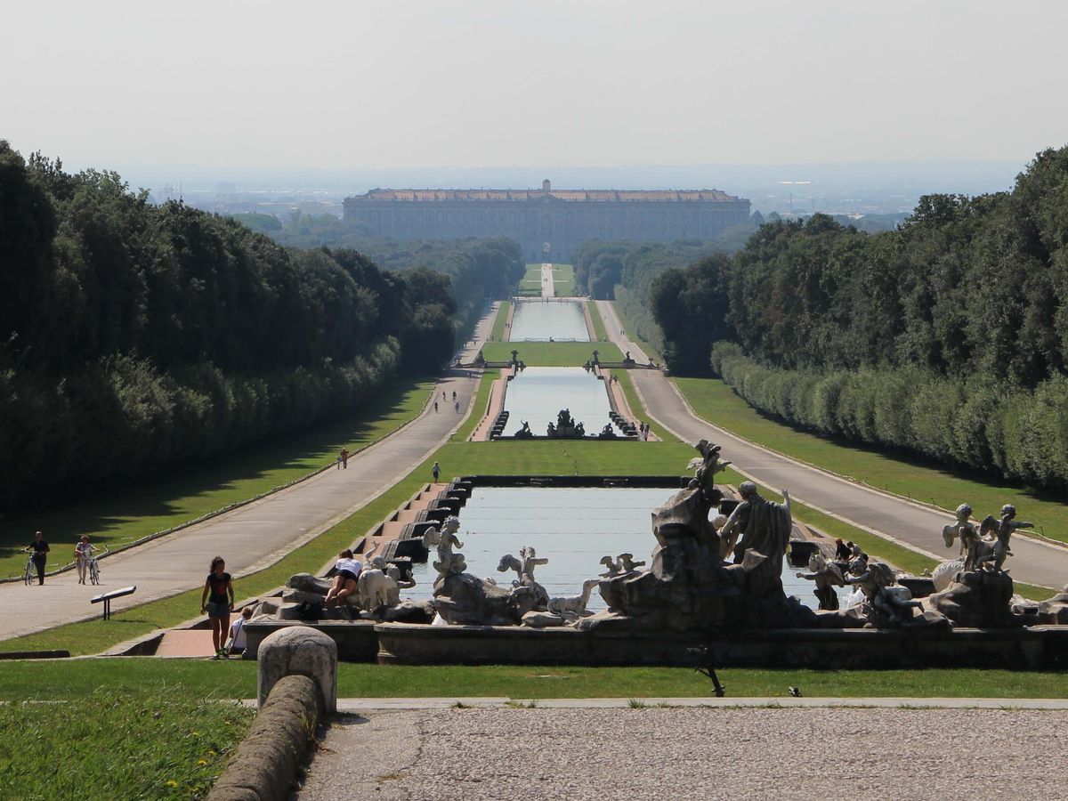 午前のみなので,王宮内を一通り案内していただいた後,庭園散策の時間は40分ほど.端までは3㎞と聞いていたので,馬車は高いし,バスでは行ったきり帰りに間に合わなそうで,そこまで行くのは諦めかけたのですが,レンタサイクルもあり,電動アシスト自転車を借りられたので,疲れることもなく水路の始まりの滝まで行くことができました.