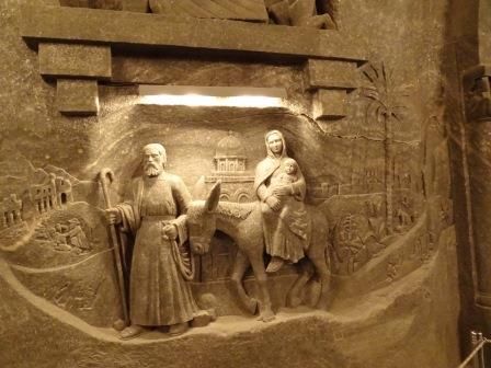 国内外で炭坑や鍾乳洞を見ているので同じようなものとだと思っていたが、規模と完成度の高さに驚いた。最初に何十階もの階段を下りた上に、いくつもの礼拝堂を見ながらどんどん降りていきます。前もって「最後はエレベ-タで昇る」と分っていたので、頑張って歩き、岩塩坑の歴史を聞きながらの見学を楽しめました。