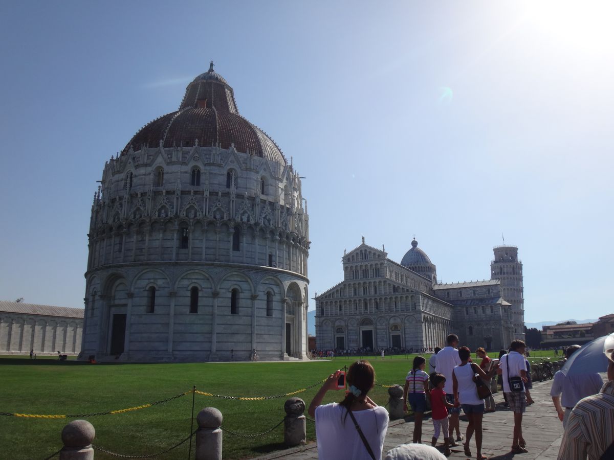 最後はピサに向かいますが、思った以上に大きな街でした。ドゥオモ、洗礼堂、ピサの斜塔などは、ツアーの料金には含まれていませんので、自分でチケットを購入しなければいけません。最後の街で時間が少ないので、効率よく回り、ベストショットを撮りましょう。