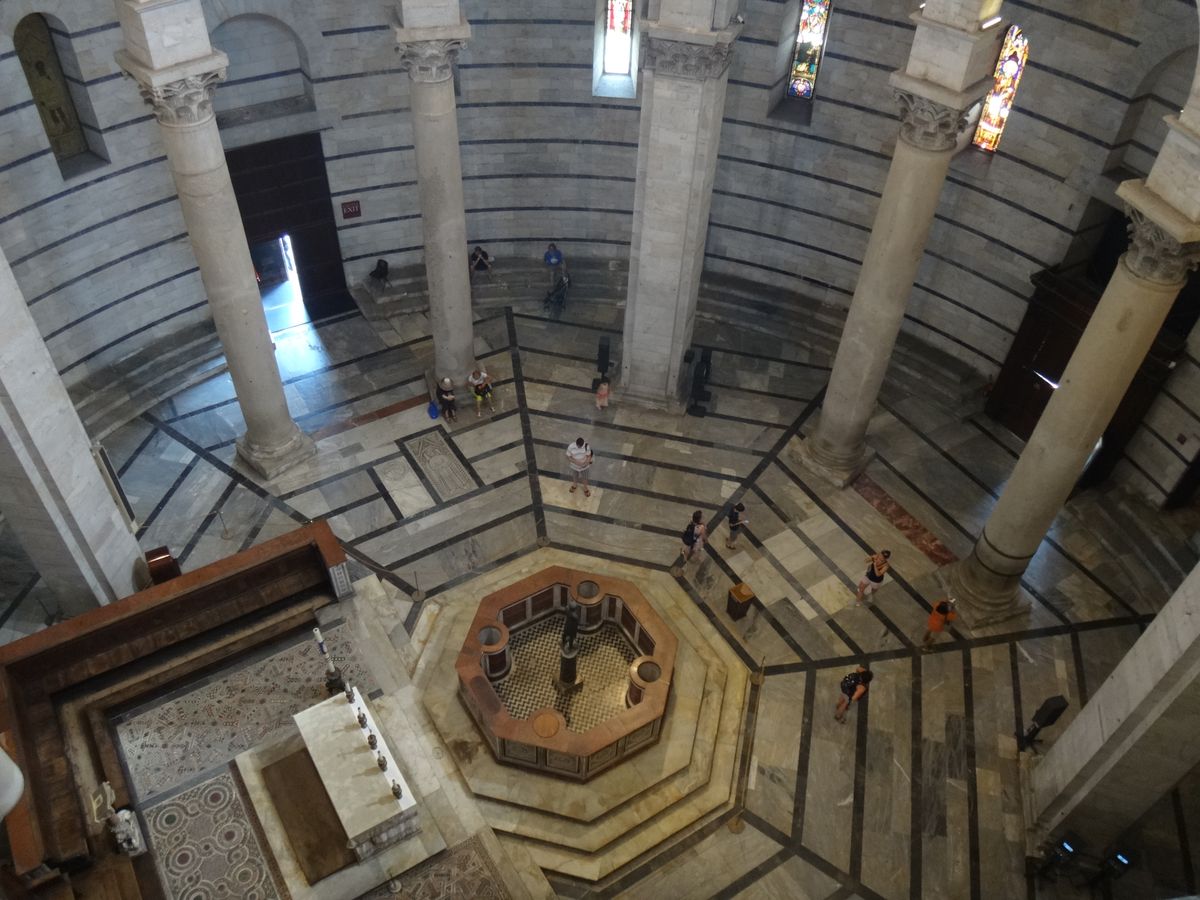 実際に見たピサの斜塔は、やっぱり傾いていました。それもかなり。倒れないようにどのような工事が行われたのかの説明も受けました。写真で見るより肉眼で見ると、さらに傾いているように感じました。