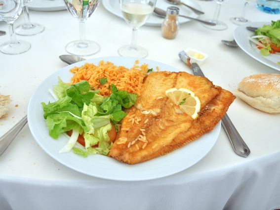 朝は到底食べ尽くせない種類のバイキング、昼と夜は美味しいスペイン料理です。