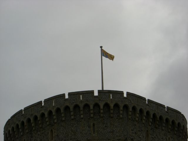 ウィンザー城の旗に黄色が混ざっていると、女王が今お城にいるというサインらしく、私たちが行った時は正に女王がいたようです。