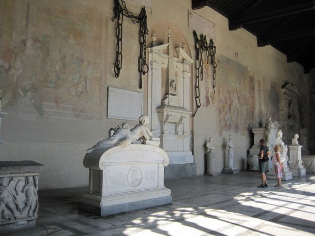お墓も歴史を感じさせる素晴らしい所でした。ピサがあまりにも有名で周りの建物に知識が有りませんでしたが、素晴らしいものでした。時代を感じさせない大理石の白さ奇麗でした。是非お勧めです!!
