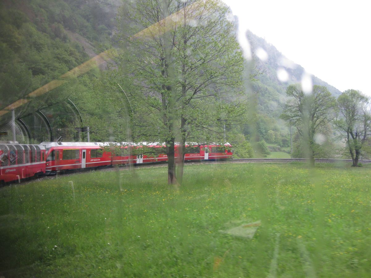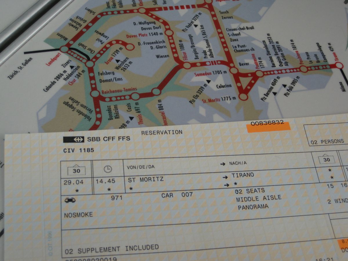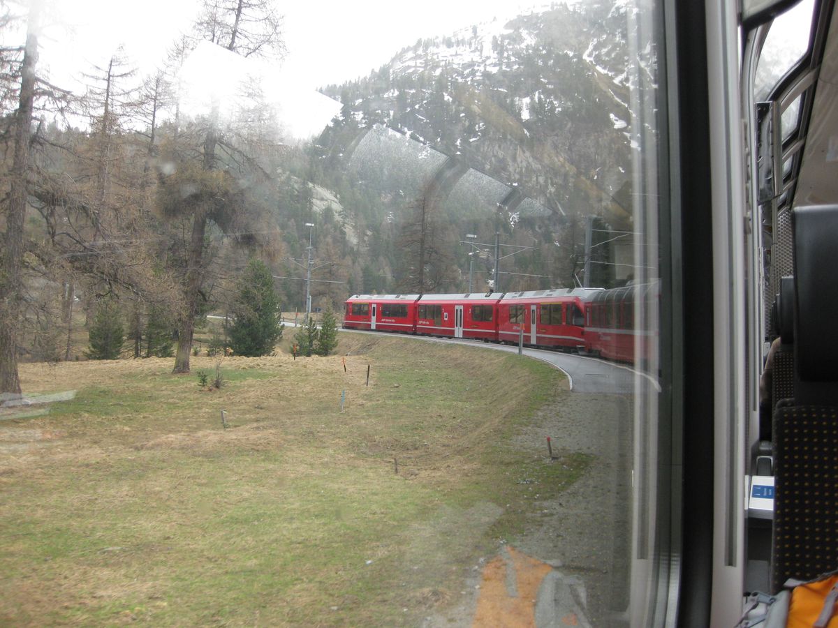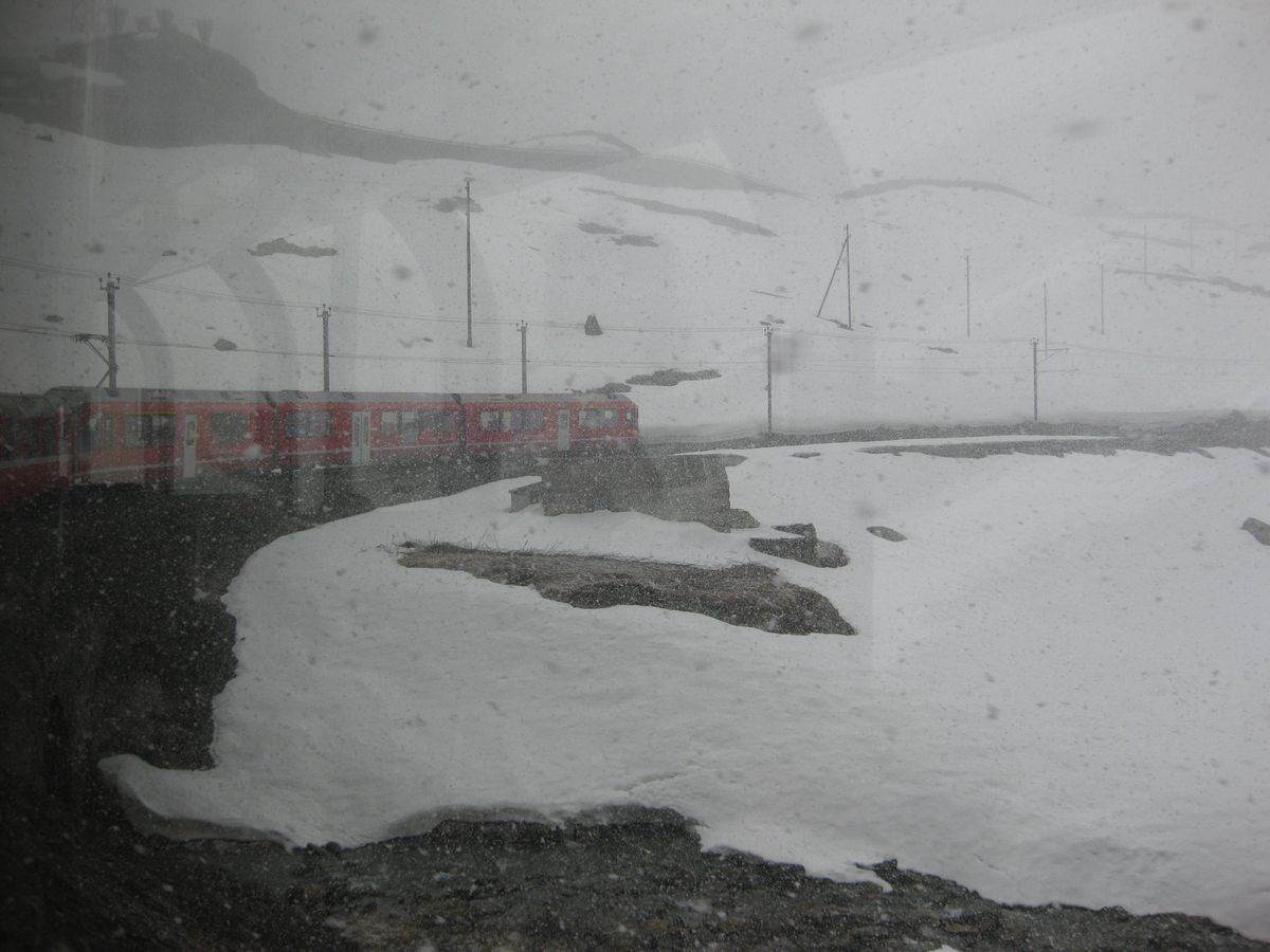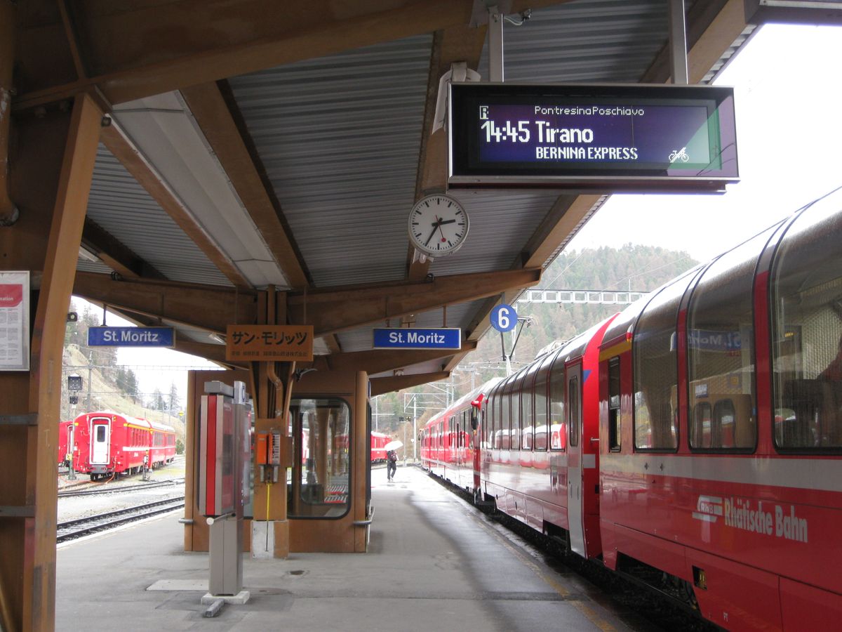 肝心のサンモリッツですが、目的がベルニナ急行に 乗ることでしたので、朝8時20分に乗車。案内通りに写真付きでしたのでわかりやすかったです。但し、コッコリコで乗換のとき、地下に降りて、4番線とありましたが、1番線を前にいき、先のホームからでした。現地のシニョーレが迷ってる私たちに声をかけて