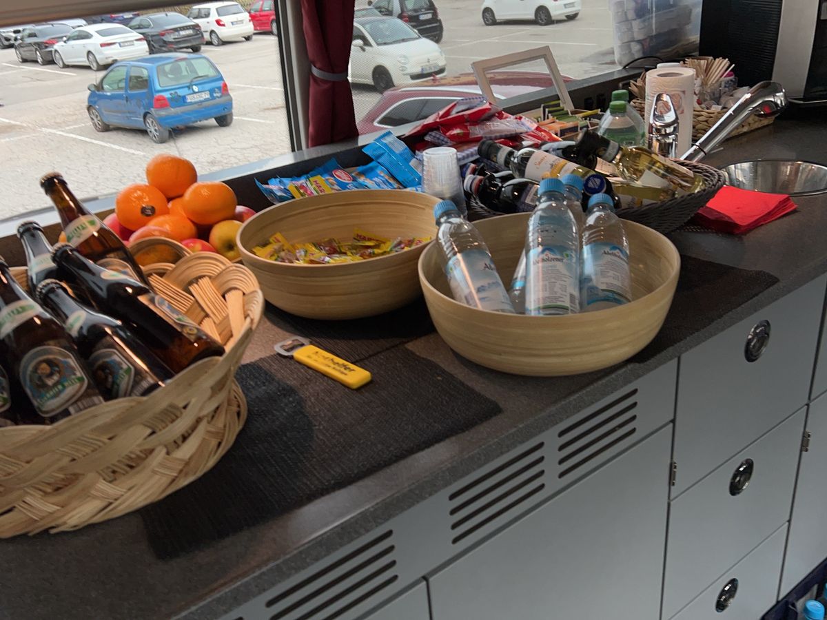 番号を見せて一番先頭に止まっていたバスに乗車しました。ツアーはリンダーホフ、街散策、ノイシュバンシュタイン城の順に散策でした。英語が分からなかったので、ガイドさんに毎回全体のアナウンスが終わった後、個別に時間と集合場所の確認をしてもらいました。ガイドさんが本当に優しくて助かりました。問題は、ノイシュバンシュタイン城の散策です。私のツアーではノイシュバンシュタイン城の麓にあるP4の駐車場についたのが13時台でした。お城は山を登ったところにあり、お城の中のガイドツアー時間が決まっているので、それまでに各自ふもとでご飯を食べて、各自で山の上まで登るものでした。私はサンドウィッチを持参していたのと、バスの中でバナナなどフルーツも配っていたので、それをもらって、ふもとではご飯を食べずにバスで向かいました。他の参加者はふもとでレストランに入ったようです。バスはマリエン橋の近くが終点になっているので、そこで降りて、マリエン橋まで歩いて移動します。そのあと、また山を登っていくと、ノイシュバンシュタイン城があるので、その途中でベンチがあったので、そこで昼食を食べました。そのあとはお城の周りのお土産屋さんをみたり、トイレを済ませたりしましたが、かなり時間があまりました。なので、登る時は馬車にすれば良かったなと思いました。その後時間になりお城を音声ガイドとともに見学しました。終わった時点て麓の駐輪場まで残り50分ほどでした。お城の中にもお土産屋さんはありましたが、素通りし、出口を目指しましたが、出口まで以外と遠かったです。そのあとすぐに下りだして、帰りは馬車に乗ろうと思いましたが、馬車の乗り場に一台もおらず、歩いて下りました。なので、馬車に乗りたい方は行きで乗るほうが確実だと思います。徒歩で40分と地図に書いてあったので、早歩きで下りましたが20分ちょっとくらいで麓の駐輪場まで戻ってこれました。英語が分からないので、集合時間などにかなり不安はありましたが、なんとかなりました。しかし、ツアー客の一部は馬車に乗って降りてきたグループがいて、集合時間に20分ほど遅れてきた人達もいました。海外あるあるでしょうか。しかし、バスもゆったりしており、念願のノイシュバンシュタイン城も見れて大満足です。ありがとうございました。