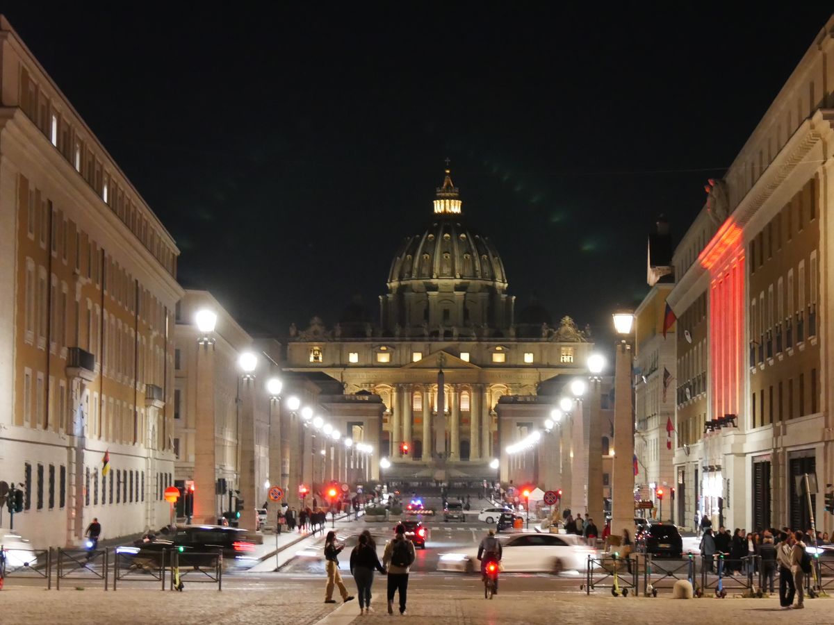 ガイドさんに夜のサンピエトロ寺院が綺麗に見える場所に案内してもらいました。幻想的で一緒に行った妻はこの場所だけでテンションがマックスに。昼間に訪れた時と全く違うサンピエトロ寺院に魅了されました。