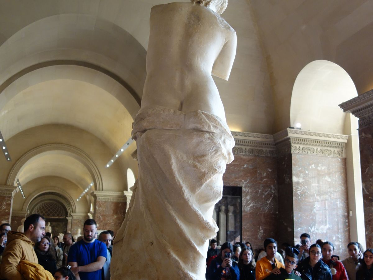 バスチーユの市場で日本では見かけない珍しい野菜に足を止めたかと思うと、バスチーユ襲撃事件の現場となった牢獄跡を確認し、革命の歴史に思いを馳せる。ルーブル美術館に入ってミロのビーナスやニケ像の流れるような薄衣の表現にため息をついたかと思うと、「モナリザ」を見るための長い列に並び、だんだん近づいてくる本物を前に大興奮。アンバリッドでナポレオンの墓に圧倒されたあと、モンパルナスタワーからパリの街を一望し、夜景の美しさに息を飲む。これほど盛り沢山で充実した時を過ごせたのは、ガイドさんのお陰です。どの場所も自分たちだけでは十分に味わえなかったでしょう。ルーブル美術館の近くでガイドさんと一緒に食べたお昼の味も忘れられません。ありがとうございました。