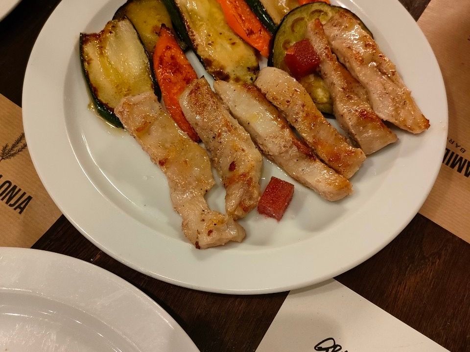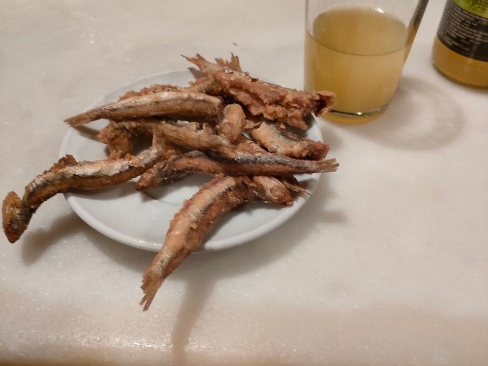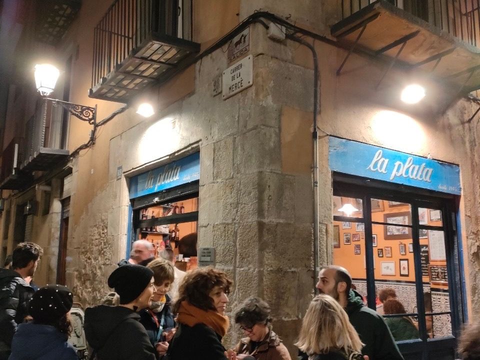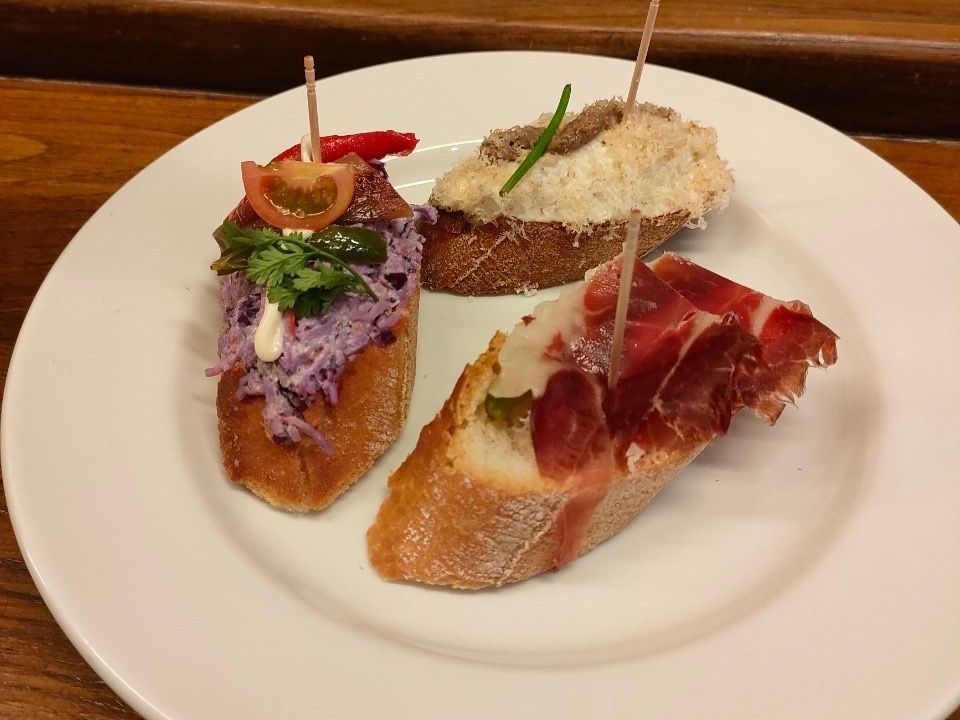 みんな立ち食い、立ち飲みでお店はいっぱいで賑やかでした。一軒目は小魚フライがとても美味しい店でした。二軒目はピンチョスで美味しかったです。三軒目はレストランで生ハム、ししとうの素揚げ、イベリコ豚焼きなど、お腹いっぱいでした。