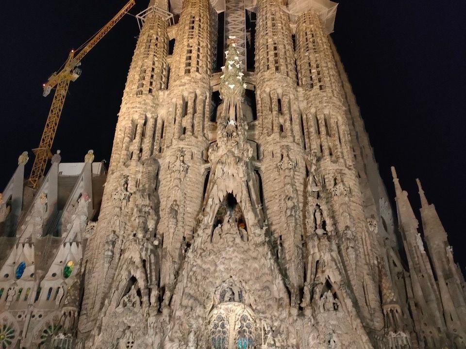 夜景のサグラダファミリアは昼間とは別で人通りも少なく、幻想的でした。素晴らしい!