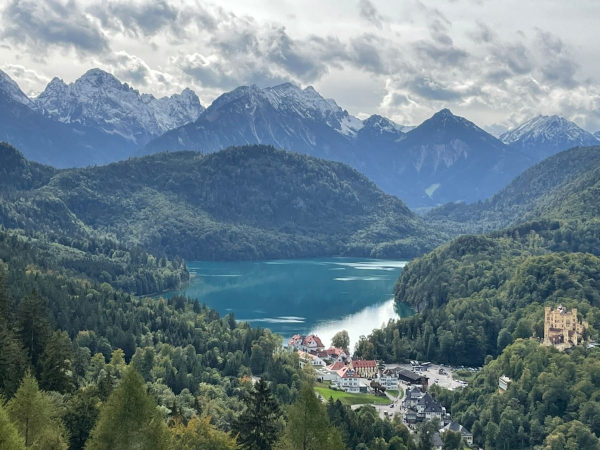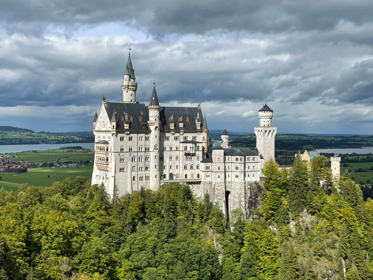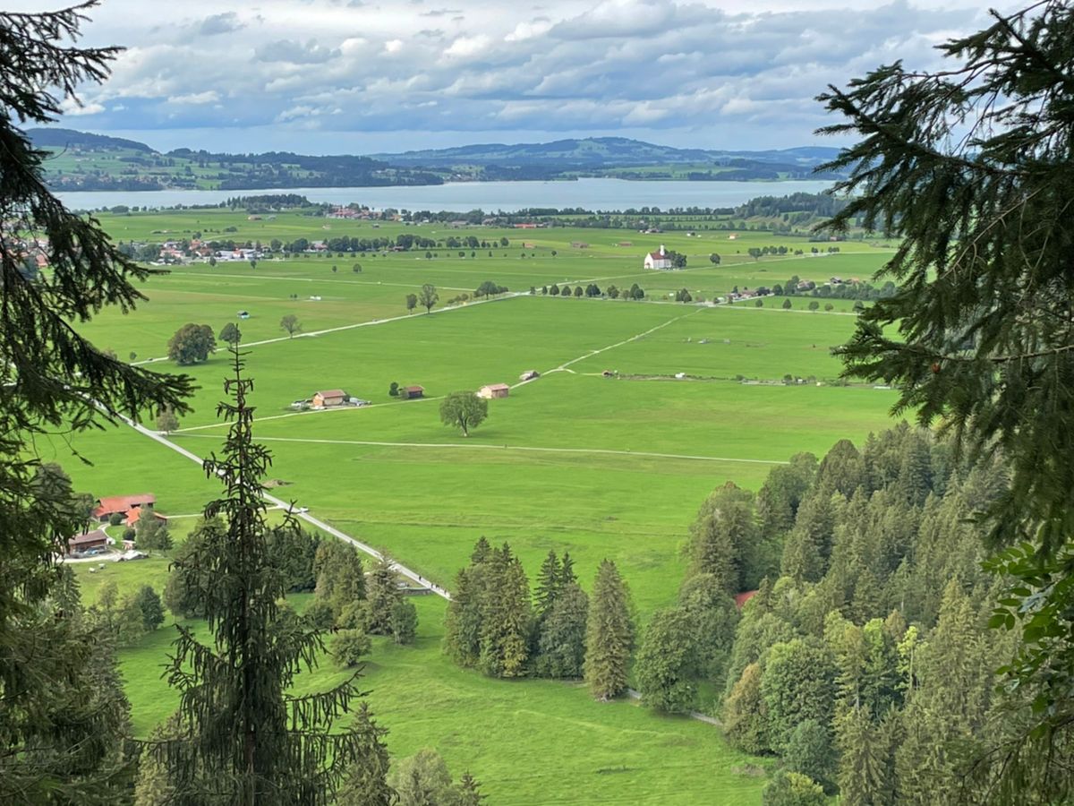 ノイシュバンシュタイン城も周りの山々、湖の風景も美しく、都会のミュンヘンとちがってドイツの郊外を知ることができて楽しかったです。昼食を取る時間がないかもと考えていましたが、実際は1時間ほどあり、麓のレストランで食べました。14時ちょうどのバスでお城へ(20分おきに出発するようで、00分、20分、40分となっているようです。運転手さんに直接支払うので現金のみだと思います)。マリエン橋での撮影時間も十分、入城時間が15時45分だったので、お城の前で少し待ち時間がありました。バスの中でもらった地図には、麓にしかトイレマークはありませんでしたが、お城にもトイレはあります。お城からの帰りは下りなので歩きました。疲れるほどではないです。