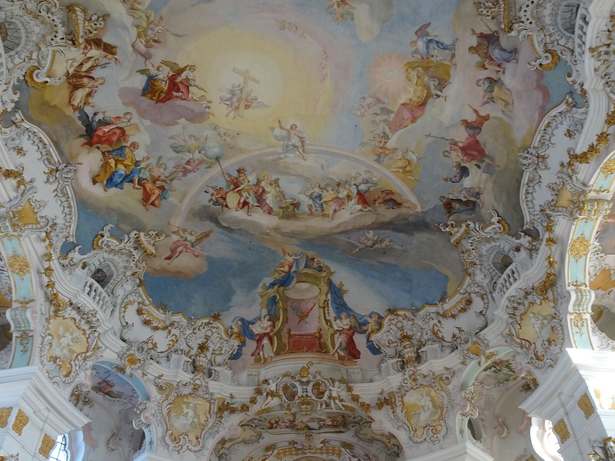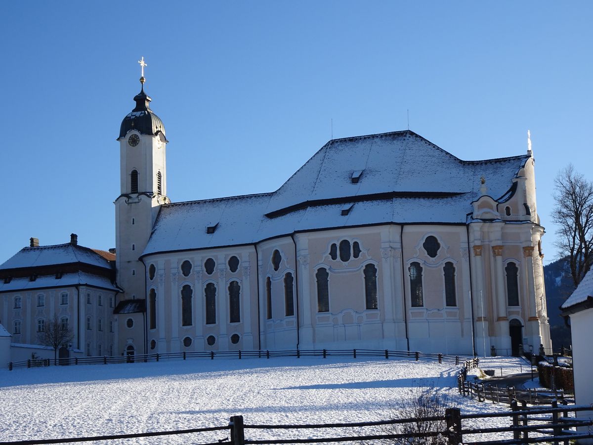 14:00頃ヴィース教会に到着しました。内部の装飾は細密で優美、素晴らしかったです。血の涙を流したというイエス像も含め、写真をたくさん撮りました。また周囲は広々とした銀世界の牧草地で、快晴のなかとても綺麗でした。なかなかアクセスが難しいところなので、ツアーで行けてよかったです。