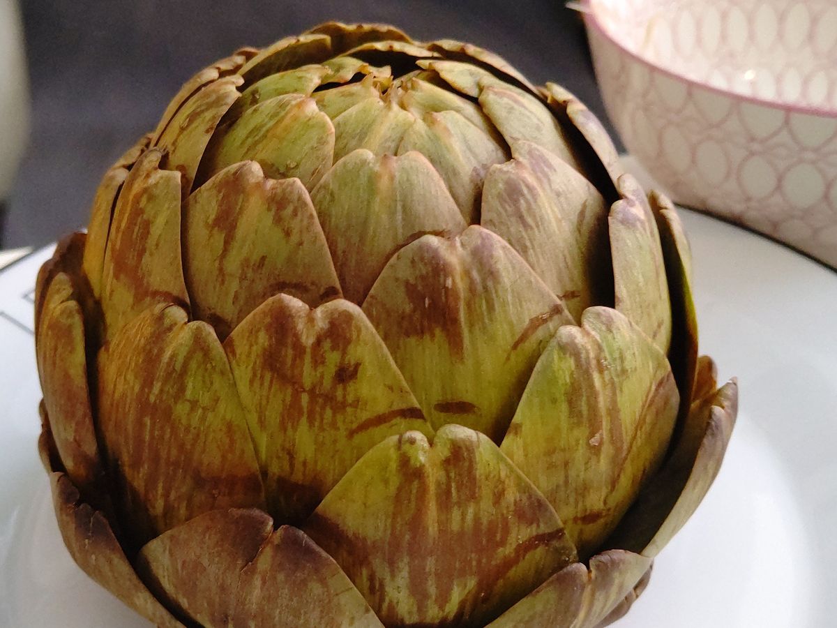 ホテルでアーティチョークを茹でていただきました!