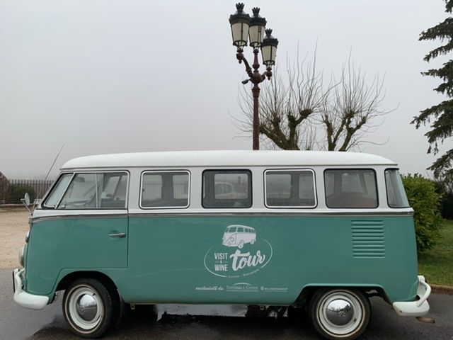 オーナーのニコラスさんが旧型のフォルクスワーゲンを運転してコルトンの丘を案内してくれます。この車がまたいい味をだしていて、ブドウ畑の間の舗装されていない道をガタガタ言いながら走ります。途中3カ所ほどでストップしてニコラスさんからワインについて、この辺りの歴史や手法について学びつつ、もちろんここでもテイスティング。畑の真ん中で飲むワインはまた格別でした!