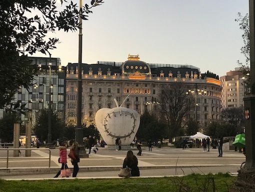 地元の恋人たちがベンチに座ってサグラダファミリアを眺めながら語り合っていました。