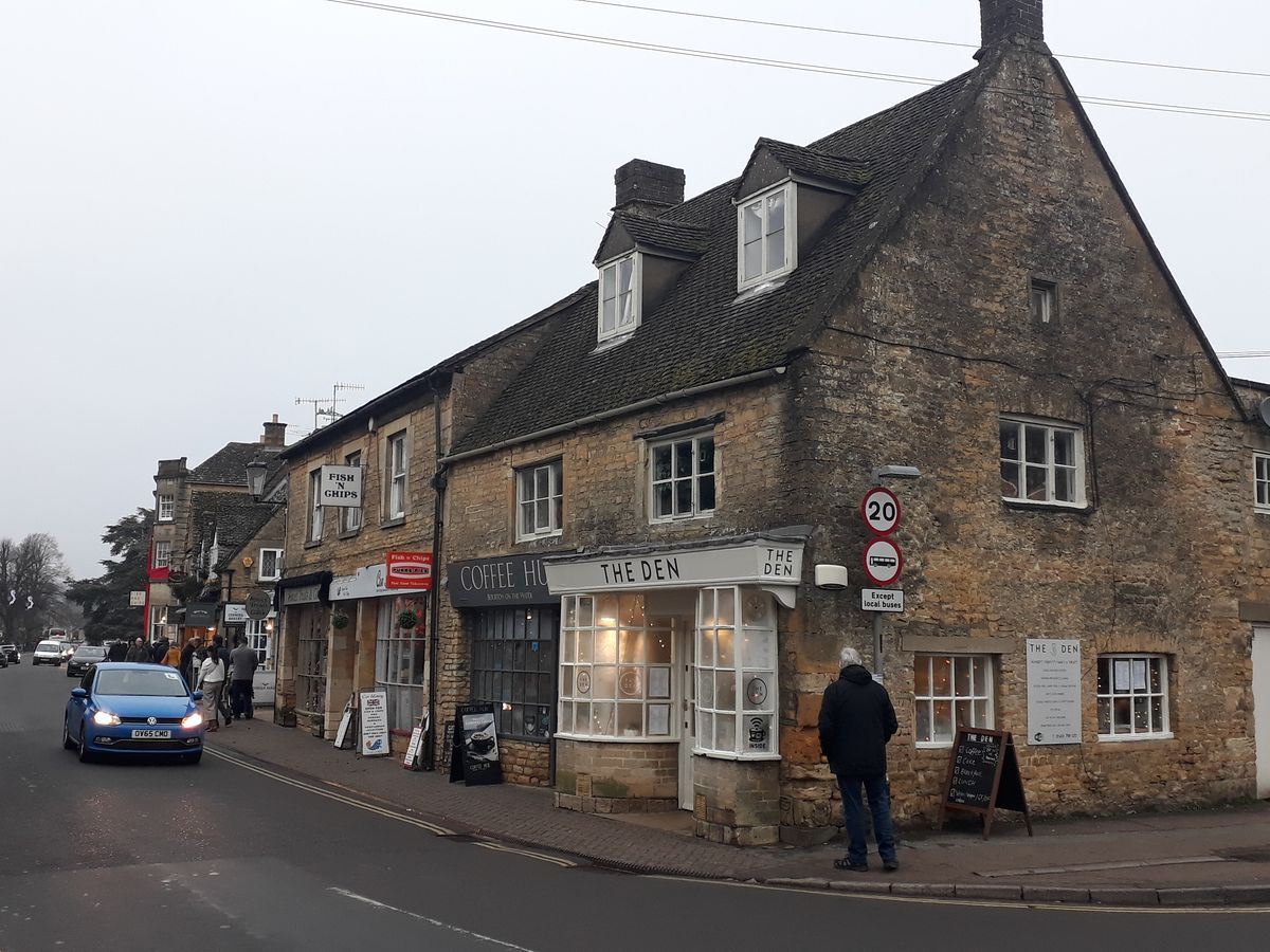 青空の中、まずは川沿いの町で朝の散歩。教会は木と石のユニークなコンビネーション。橋を渡ると地元のスイーツカフェがあります。