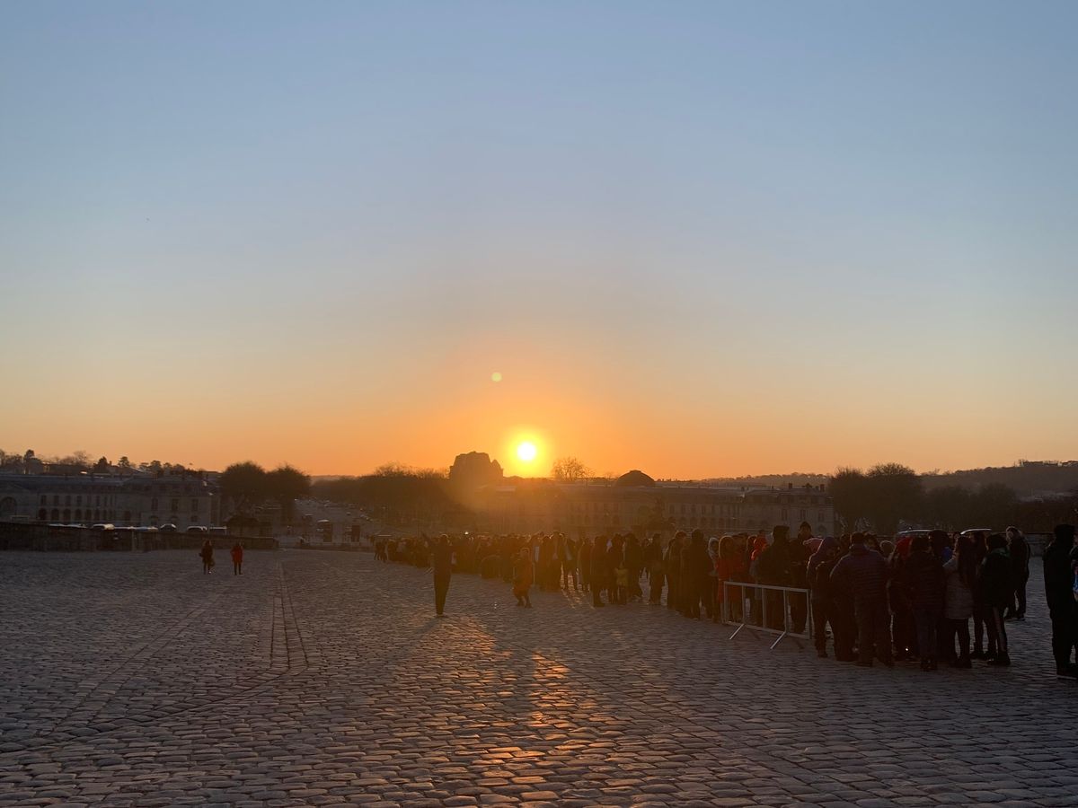 ヴェルサイユ宮殿朝陽が昇り金色に輝いて素敵でした。
