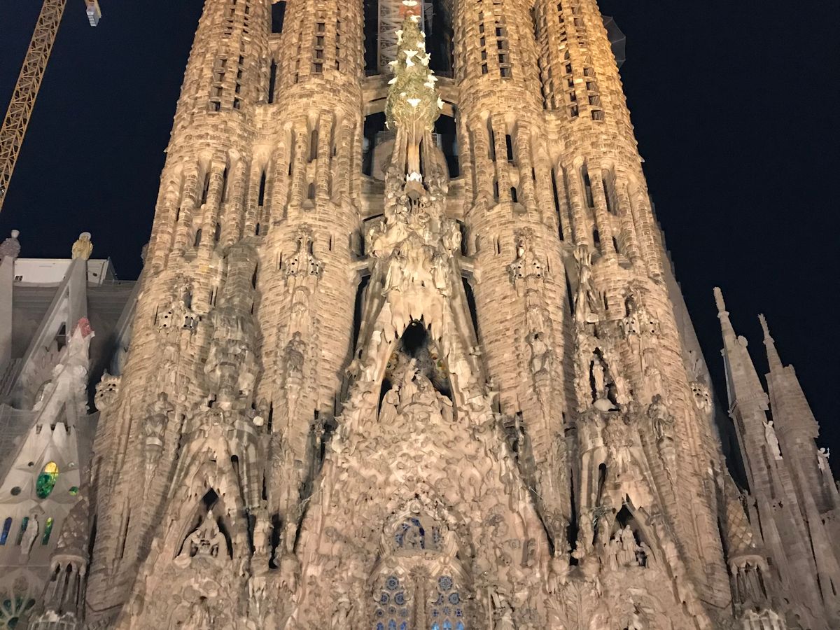 サグラダファミリアのライトアップが早く終わってしまうという情報があり、先に夜景鑑賞しました。バルでは美味しい生ハムが食べられて良かったですが、時間に余裕が無く慌ただしく食べたのが残念でした。