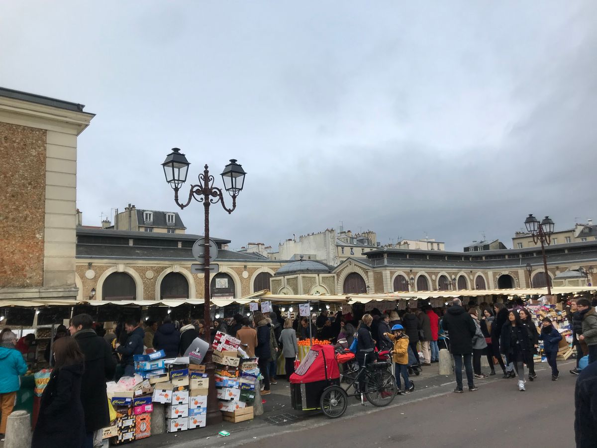 ヴェルサイユ宮殿の後はマルシェに移動して(バスで10分ぐらいだったと記憶しています)、40分ほど自由時間を設けられ買い物を楽しみます。ここでガイドさんがおススメのクレープ屋を紹介して下さり、多くの方が召し上がっておられました。辺り一面に屋台が広がり、フランス人の日常が垣間見えると思います。買い物を楽しんだ後は1時間程かけてバスで帰路につきます。