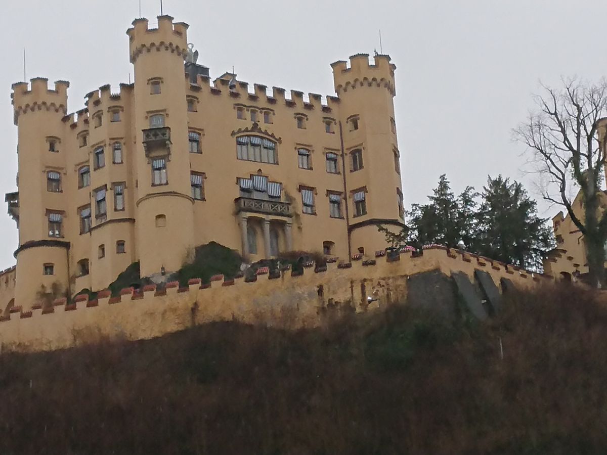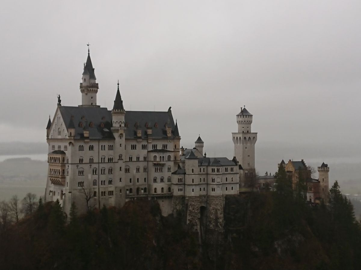 雪のノイシュバンシュタイン城を期待していましたが、当日は冷たい雨。麓からお城までの徒歩の往復は寒くてちょっとしんどかったけれど、マリエン橋まで行けてベストな角度で城を見られました。冬とはいえ、沢山の観光客が押し寄せているので、マリエン橋にいかれる方は時間配分を考えた行動が必要です。マリエン橋は、冬期は天候によっては閉鎖されるかもしれません。