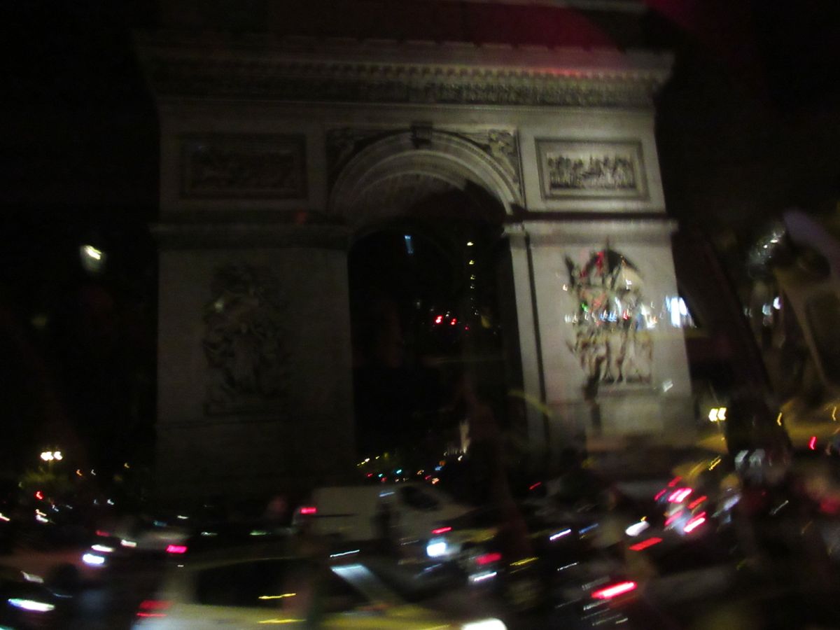当日はサッカーの試合があり、凱旋門は封鎖されていました。さすが日系の会社です。時間を調整し、最後に凱旋門をまわし、下車して夜景撮影をさせてもらいました。解説もあるので、パリの到着日など地理感がつかめますので、大変よいです
