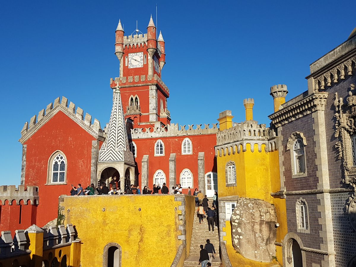 シントラのペーナ宮殿へは駐車場から歩いて500mほど坂道を登るため、歩きやすい靴が必須です。