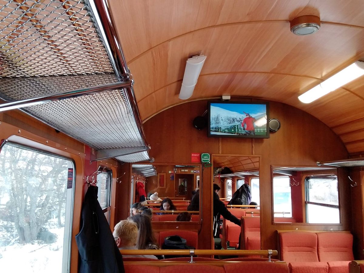 船に乗るとあたりはだんだん暗くなってきて後半は真っ暗だったと思います。ヴォス行きのバスを待つのはけっこう寒くてすぐそばのショップで待ちました。バスの中では外の景色はとっくに見えなくなっていましたが、船で出会った香港在住のインド人と中国人カップルとおしゃべりして過ごしました。最後のベルゲン行きの電車の中ではこの旅で出会ったタイの方たちともお話ができました。樂しい旅ではありましたが、日のある内に観光地に行けるのがベストだなあ、というのが評価が低い理由です。