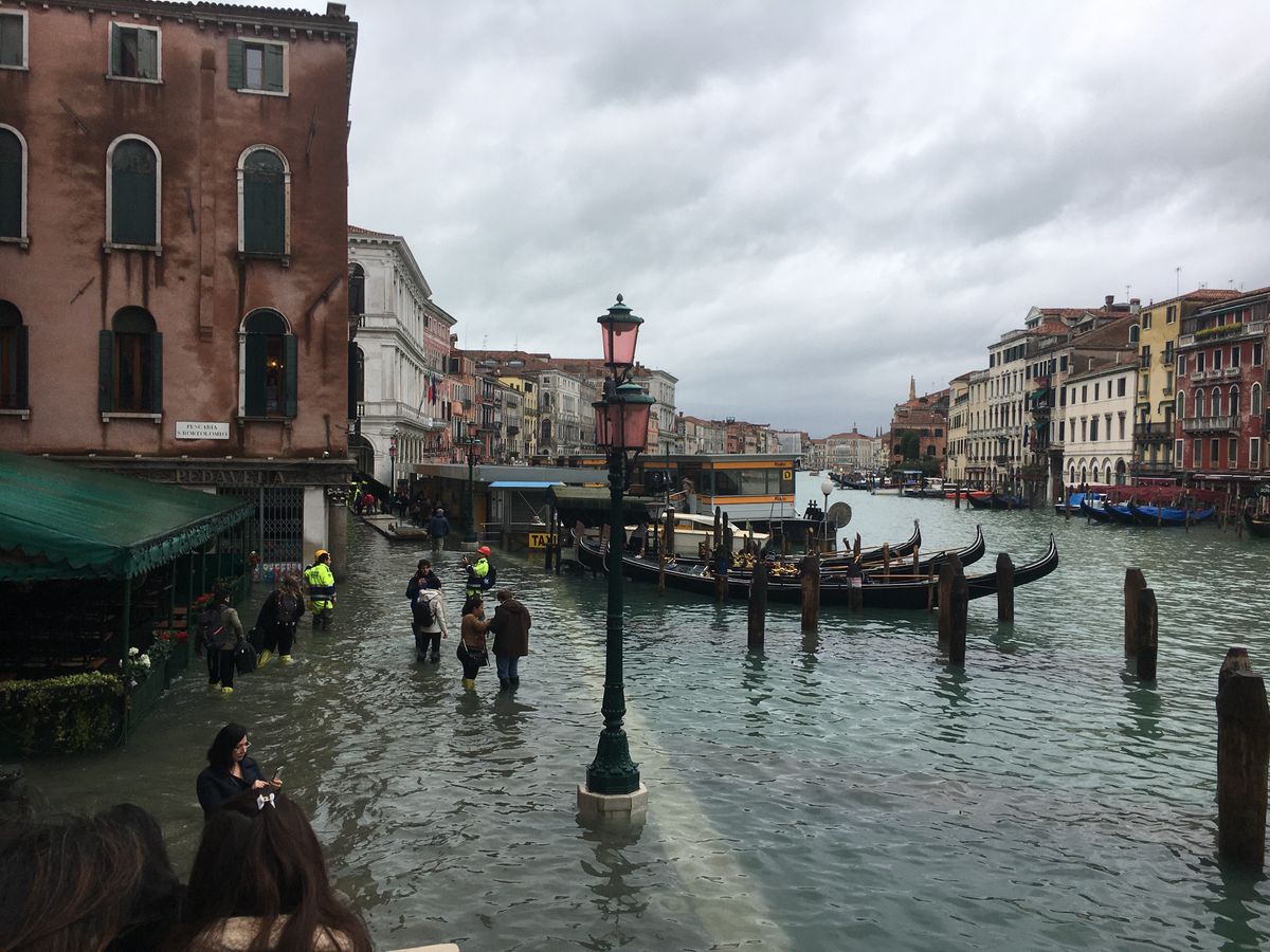 ただ、折しも50年に一度(?)という高潮の直後というタイミング。また、翌日もかなりの高潮の予報で、午後観光の予定だったのが中止となりました。ゴンドラ遊覧もついたコースだったのですが、それも中止です。