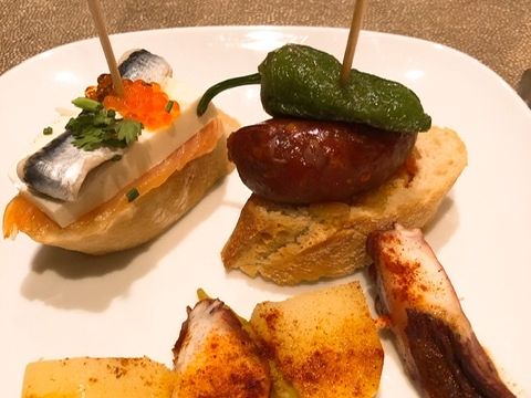 旧市街の散策とバルで飲食しましたが、1軒目はピンチョスとワインやシードルが名物のお店で、2軒目は魚介の料理とワイン、3軒目は生ハムとサングリアが美味しいお店でした!
