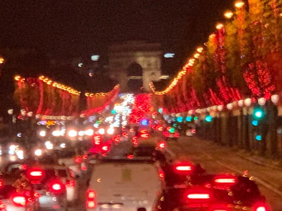 凱旋門からシャンゼリゼ通りは通行する車のライトも含めてきらめく宝石箱のようでした。