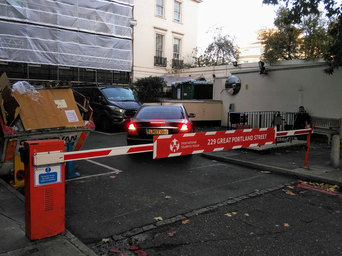 とても不安になりますので、集まり場所の目印となるスクールの駐車場のバーの写真を載せておきます。
