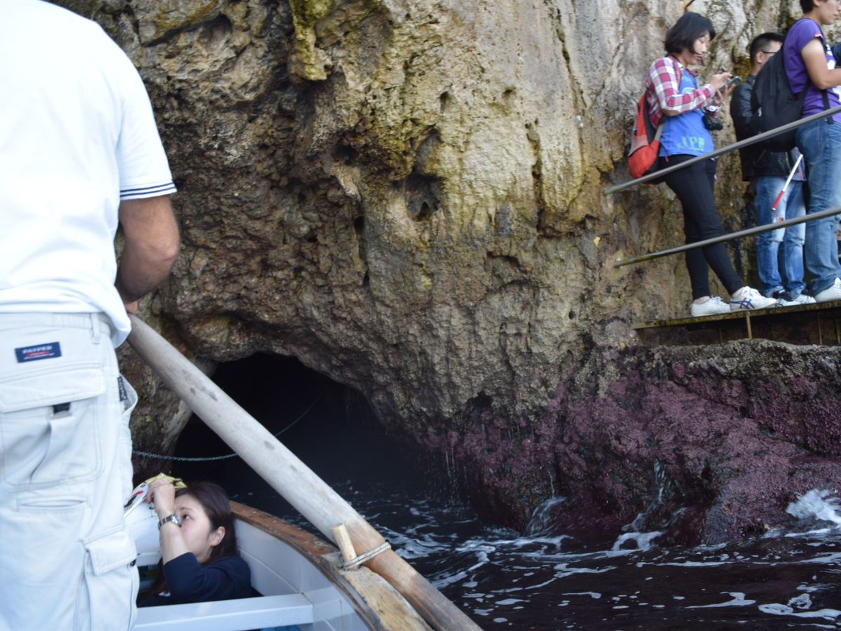 マリアローザさんは、状況に応じた決断が素晴らしく、現地の人からも信頼されているようで、色々なところで少しずつ有利に動けている感じがした。客が我々夫婦だけで動きやすかったという理由もあるとは思うが、青の洞窟への途中では連絡ボートを次々乗り換えてほとんど待たされずに内部へ。我々が洞窟から出てきたところで波が高くなり入場禁止になったのだが、途中の連絡ボートまで一緒だったグループは、結局、洞窟に入れなかったとのことだった。あの水の青さと船頭さんのサンタルチアの歌声はとても美しかったので、マリアローザさんに感謝!