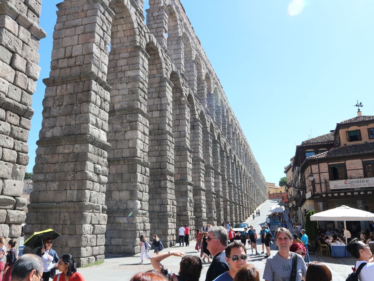 その後バスでセゴビアへ移動、こちらもマドリード市内を避けて通ったため順調でした。ローマ水道橋の真ん前にバスが到着したので、感動も半減でしたが、さすがに目の前の水道橋は迫力満点でした。