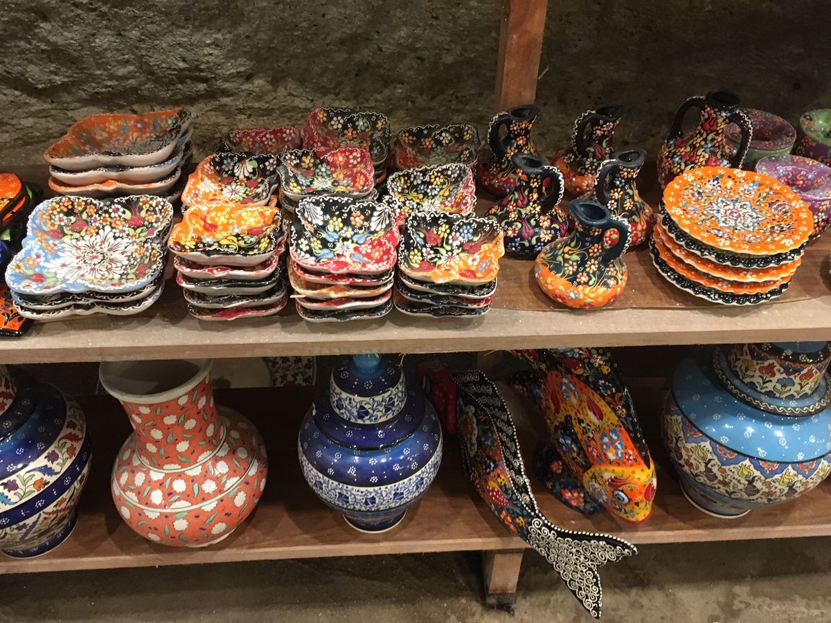 陶器のお店にも行きましたがそこまで陶器には興味がなかったのでお土産に安いのと買うだけでしたが、カラフルなたくさんの陶器が見れて面白かったです。