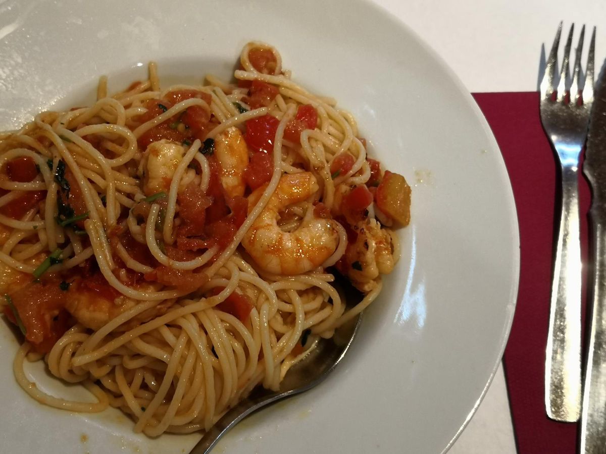 昼食での洞窟のレストランランチがなかなか雰囲気など面白くて美味、ワインハーフボトルも6ユーロ