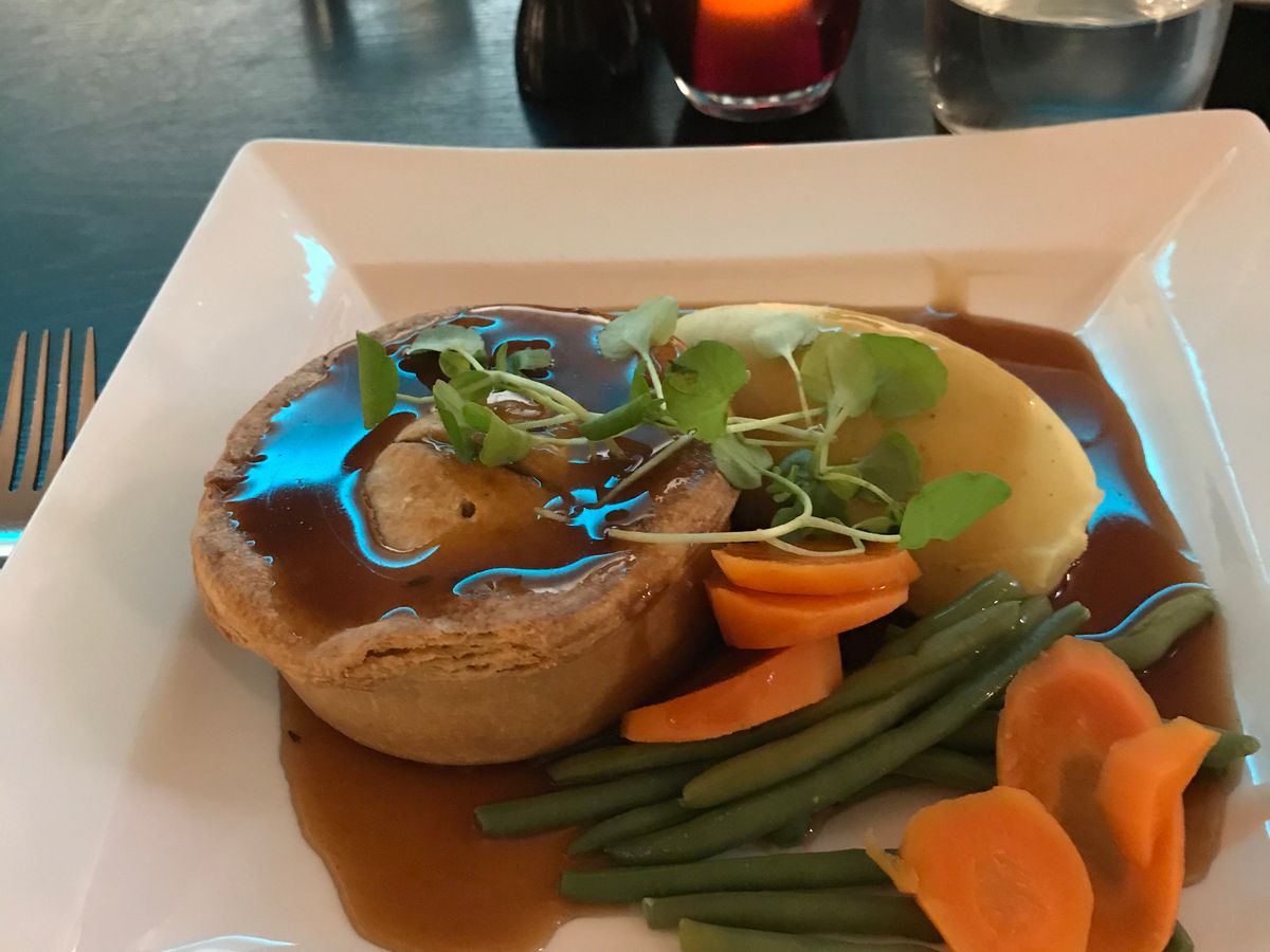 雷が鳴り、雨も降っている夜でしたが、ホテルでのビーフ&エールパイの夕食は美味しく、少人数だったのもありガイドさんからたくさんお話が聞けてよかったです。