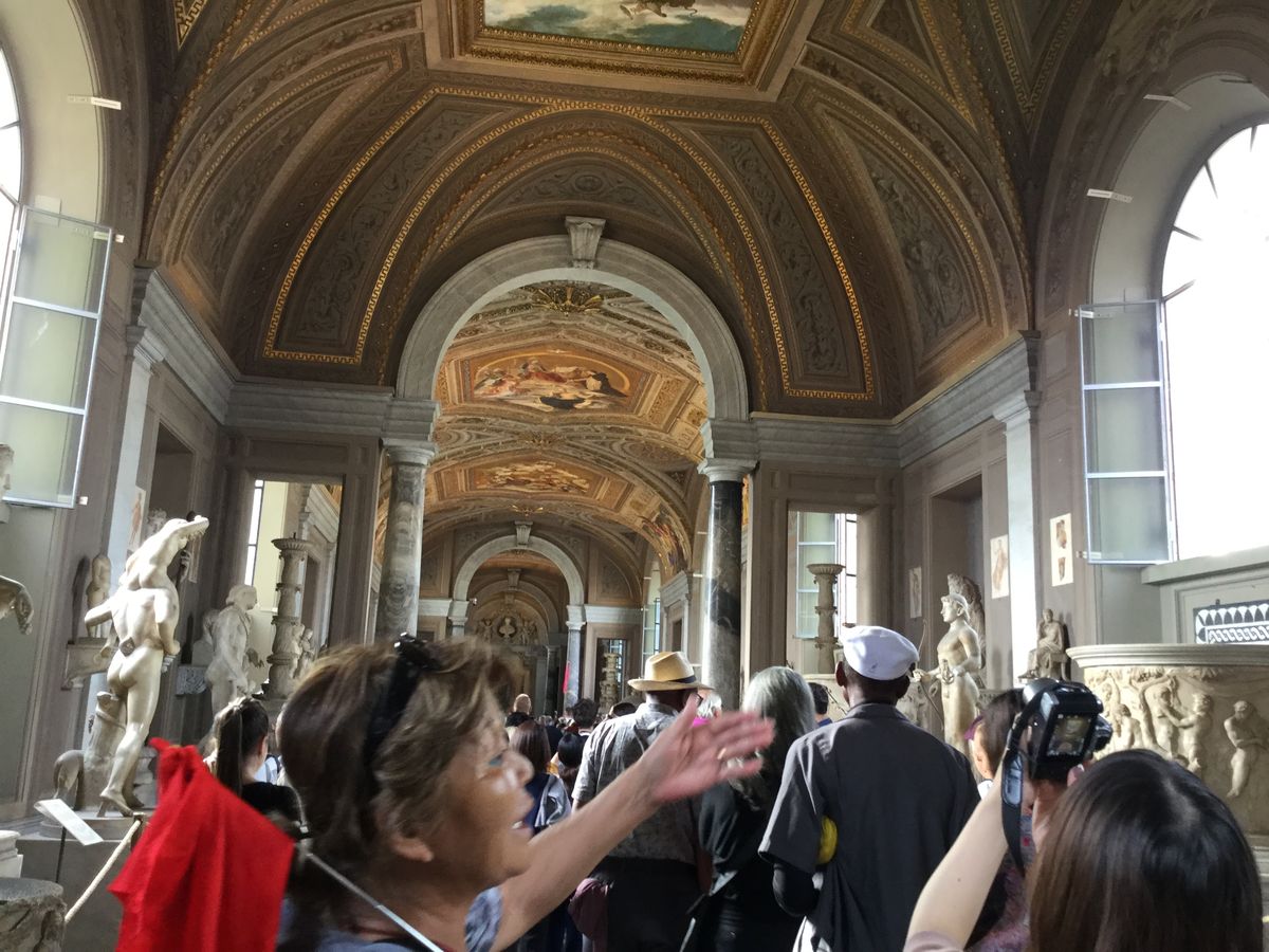 説明はどれもとても面白く楽しかったです。カラカラした方がガイドさんで、バスに乗ってすぐ、携帯をホテルに置いてきた事に気付いて、携帯が気になって、心配で、でもガイドさんがホテルに電話をしてくれて、携帯を確認して下さったので、その後安心してツアーに参加出来ました。このツアーは元に戻らないので、私たちは傘だったのですが、大きな持ち物は入り口で預ける事になり、戻れないので、後で取りに行かなくてはいけなくなる事に注意です。6時までやってたのと午前中のツアーだったので、取りに戻れましたが。ヴァチカン美術館はすし詰めでギュウギュウでした。ガイドさんが荷物気をつけてと何度か注意してくれました。お昼に戻って来て、とてもリーズナブルな、昼ごはんに連れてって下さって、美味しくイタリアンをいただきました。携帯は置いてくるは、傘は持ってくるは、、全く、、と言われましたが、しっかり面倒みていただきました。ありがとうございました。楽しかったです。