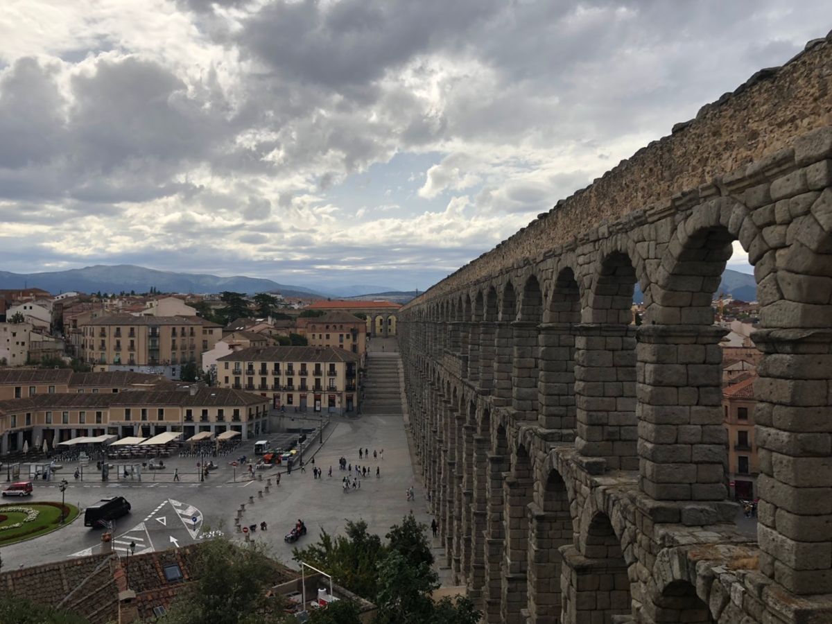 世界遺産に指定されていますセゴビア旧市街とローマ水道橋。ローマ水道橋は間近でご覧いただくと、大きさに圧倒されるかと思います。