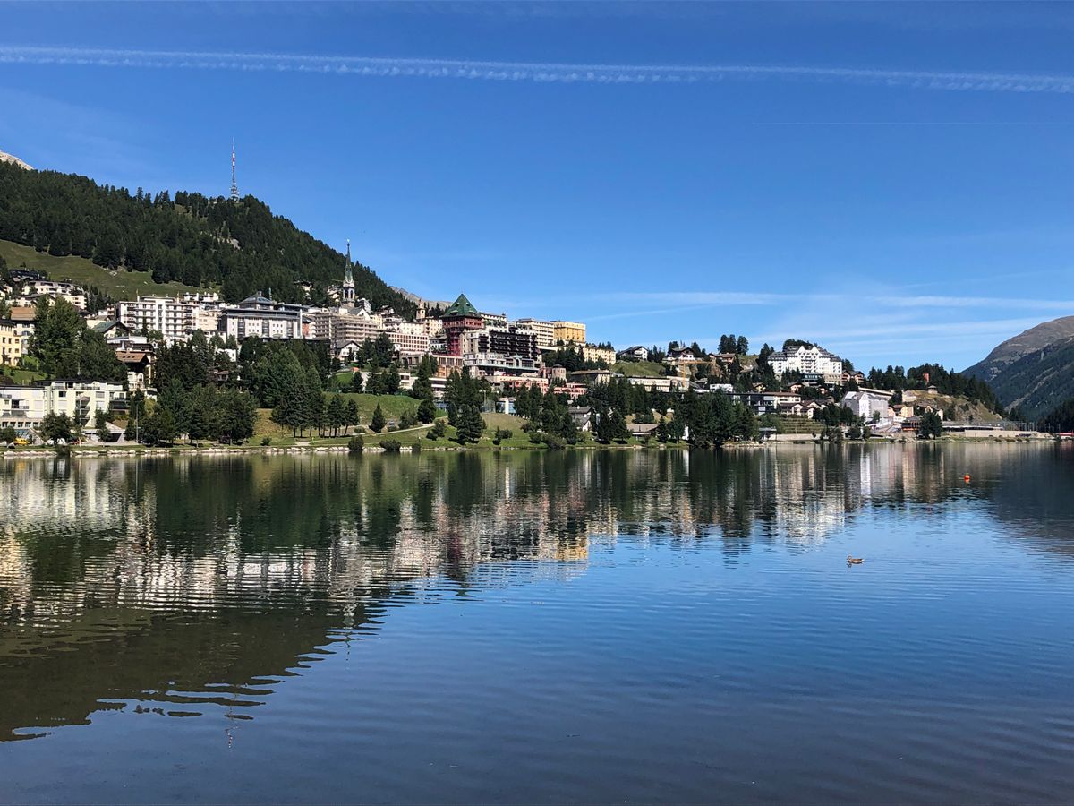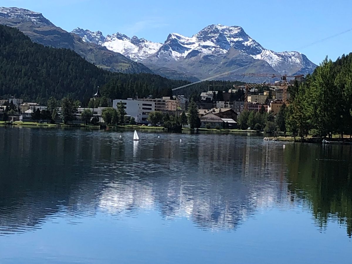 個人ツアーを選択した理由の一つに、サンモリッツである程度の時間が欲しかったからです。今回の計画では、4時間ほどの時間があったので、ピッツネイルまで登るか、サンモリッツ湖畔を一周ハイキングするか悩みましたが、今回は湖畔一周にしました。