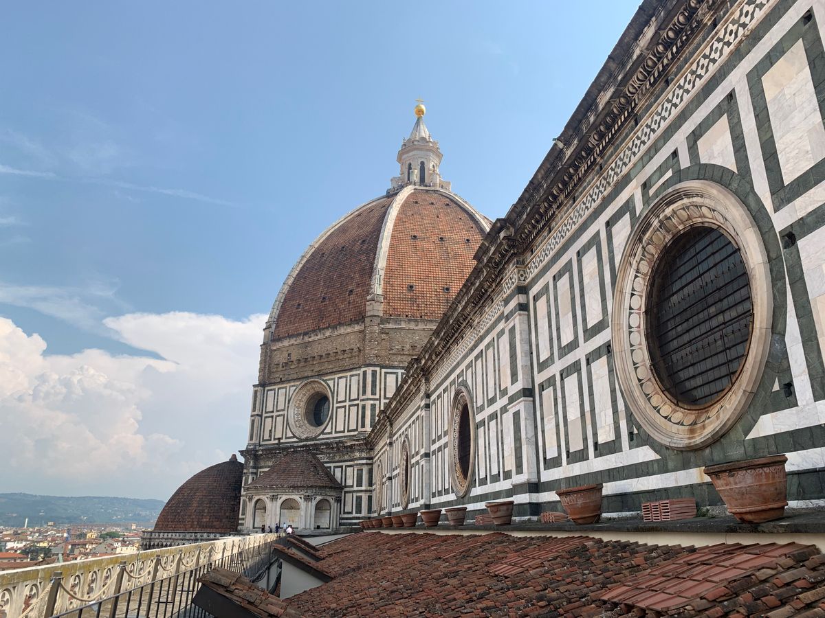 クーポラの展望デッキまで登る途中にあるテラスから見るクーポラは迫力満点!私たち以外のツアー客はいなかったので本当に独り占めしたかのようでした。