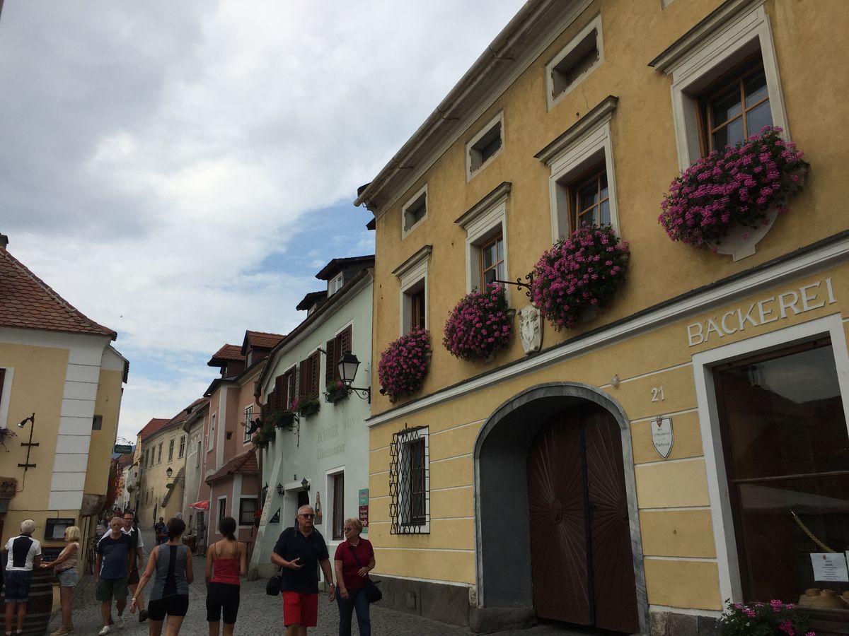 ウィーンから車で片道3時間かけて、世界遺産のチェコのチェスキークロムロフの街へ。フリープランのツアーだったので、お城の周りの小川のほとりでアイスクリーム食べながら水辺で遊ぶ子供達の様子を眺めたり、お城への道に並ぶお店を散策したりしてのんびり過ごしました。