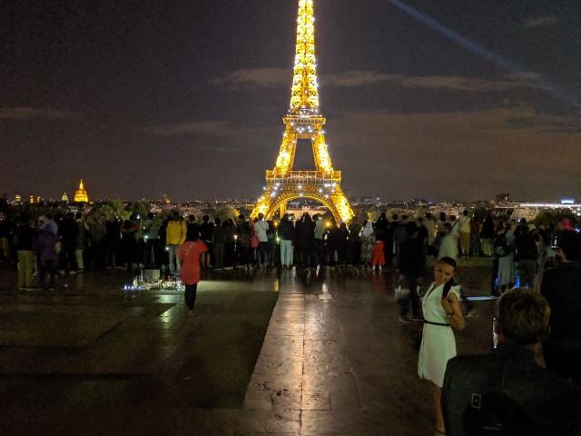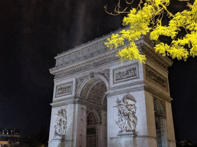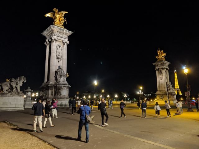 夜景、特にエッフェル塔のシャンパンフラッシュを見たいけれど暗くなってから外出するのは怖いと思っていた私たちにぴったりのツアーでした。車窓からの他、エトワール凱旋門、シャイヨー宮、アレクサンドル3世橋ではバスから降りて撮影タイムがあり、凱旋門ではガイドさんに夫婦並んで写真を撮っていただきました。シャイヨー宮ではたっぷり時間をとってくださり、エッフェル塔の真正面でシャンパンフラッシュを最初から最後までじっくり見ることができました。