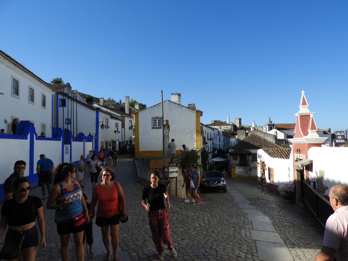 えっ、ここに2時間半も!?と感じましたが、街を散策して気に入ったレストランを見つけて、ワインを飲みながら食事をしていると、あっという間に1時間半くらいかかりますので、街や海岸の散策も入れれば2時間半はちょうどよいかもしれません。ただ、真夏は日差しが強く、紫外線で疲れました。そして16時頃にナザレの海岸を出発しますが、きちんと丘の上まで上がって展望を見せてくれますし、聖堂もゆっくり見せてくれます。時間にルーズ、ということではないのですが、少人数ゆえに皆さんのペースを見ながら、適宜調整してくれますので、急かされることもありませんが、自然とペースは落ちていきます。最後はオビドスの観光。最初に城壁に入る前にお店によってサクランボ酒のジンジャを試飲させてくれます。当方は甘いお酒が苦手なので買いませんでしたが、他のグループは皆さん買われていたようです。もちろん、このお店で買わなくても、オビドスの中のいろんなお店でも試飲できますが、一杯1ユーロ取るようです。